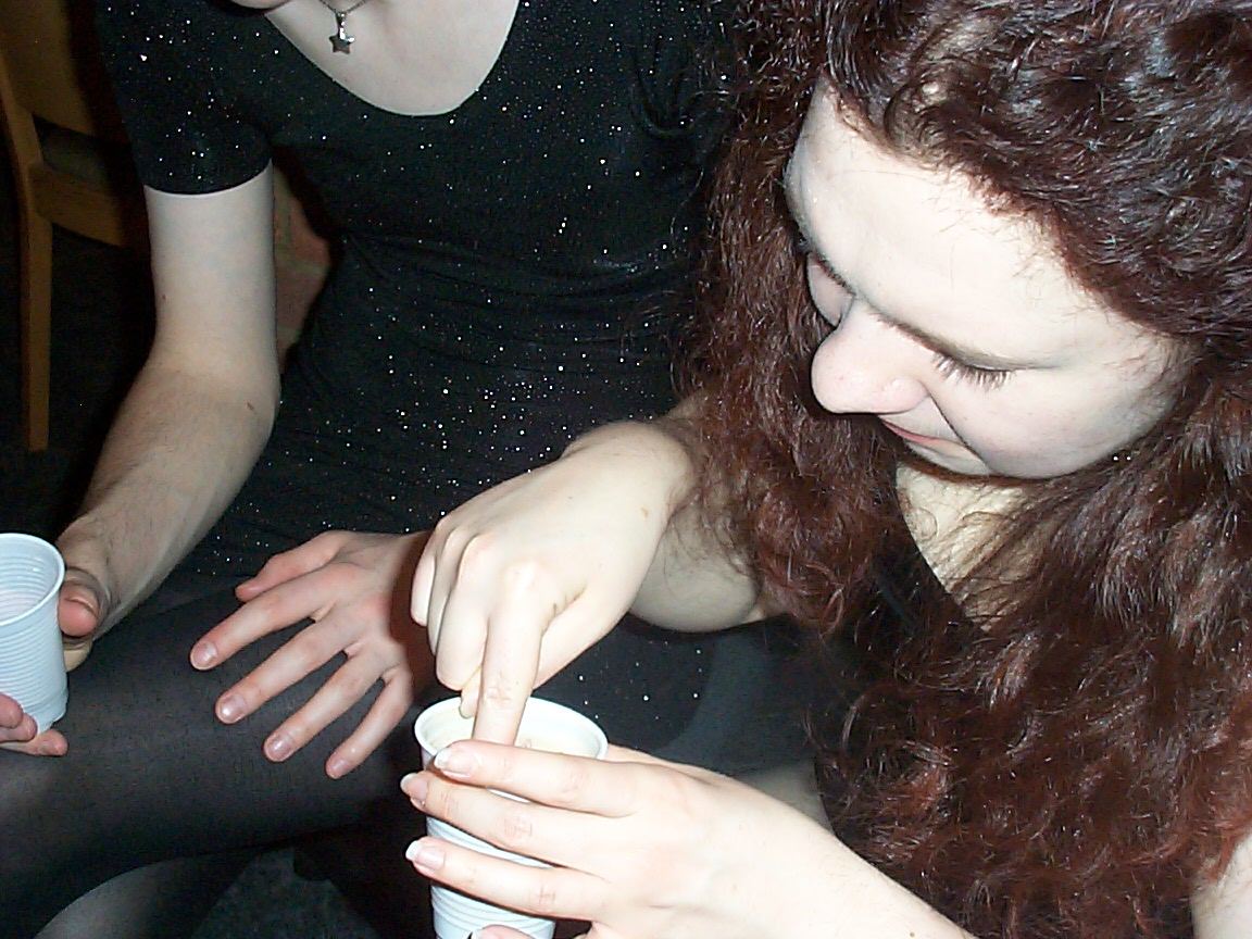 Vicky investigating Mike's drink